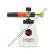 - Comparativ cu alte lanci de spumare aceasta va ofera posibilitatea de a lucra cu ea in orice pozitie, dat fiind faptul ca este prevazuta cu un furtun din silicon, flexibil, de buna calitate, si o bila gravitationala cu sita, ceea ce permite absorbtia intregului continut din recipientul gradat;